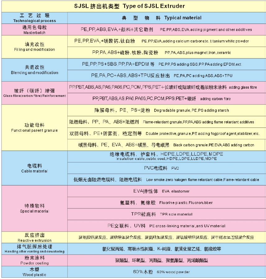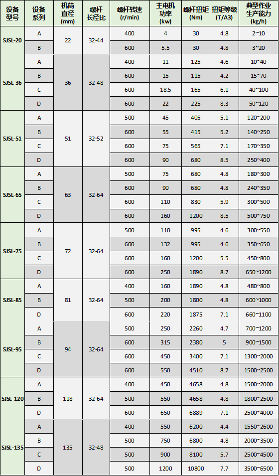 以下是SJSL系列雙螺桿塑料造粒機(jī)組的基本技術(shù)信息: